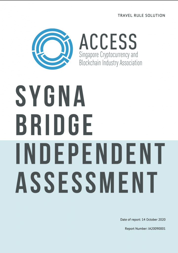 Given the significance of ACCESS’ efforts in providing regulatory guidance amongst industry stakeholders, including banks, regulators, and other financial service providers, we are pleased to share that ACCESS has acknowledged that Sygna Bridge is the first TSP to be evaluated under its independent assessment framework.