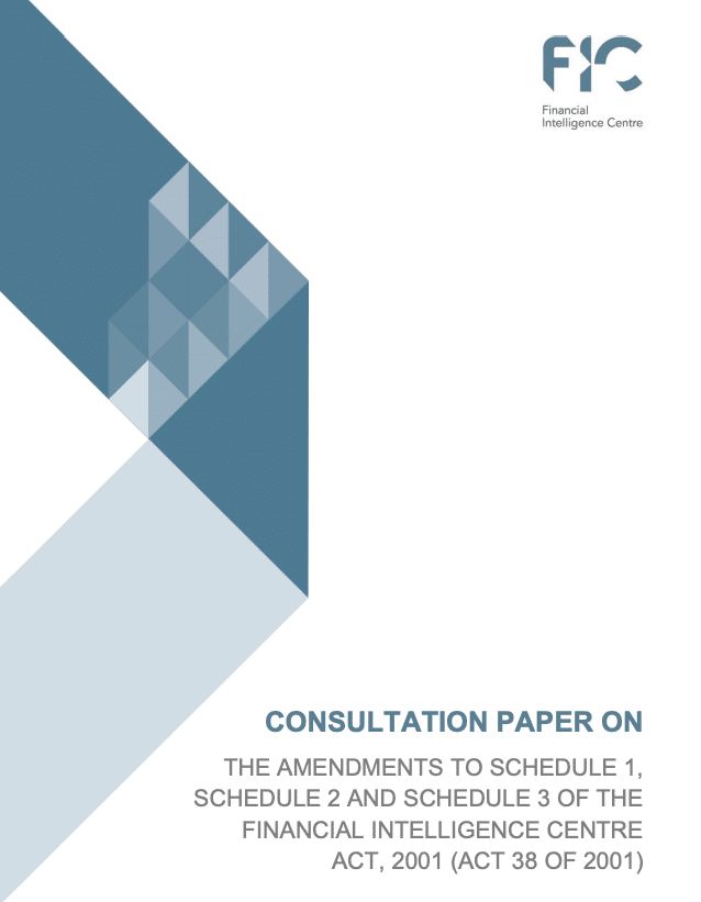 The FIC supported its rationale for the proposal with its Consultation Paper Relating to the Proposed Amendments of the Schedules to the FIC Act, 2001 (Act 38 of 2001).